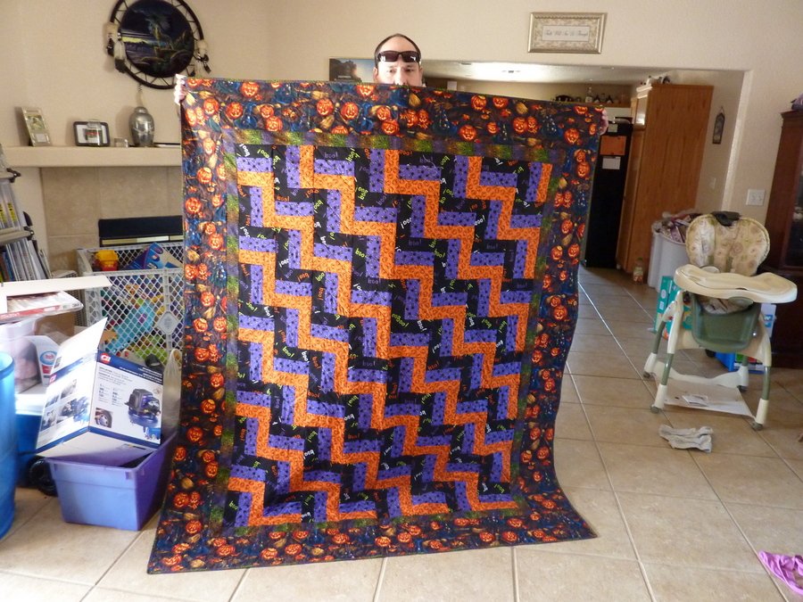 DaraF Halloween Wedding - This quilt was made with the Rail Fence block with simple mitered borders added.
