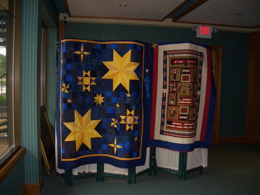 OCCAT1 Star for Valor - I made this quilt for the Village Quilter's 2009 Challenge which was for Quilts of Valor. The theme was stars and each challenge participant was given a piece of gold fabric that had to be used in the quilt in some place. I selected this pattern for this quilt because my husband and my father-in-law had each won bronze stars (now my son has one, too).
