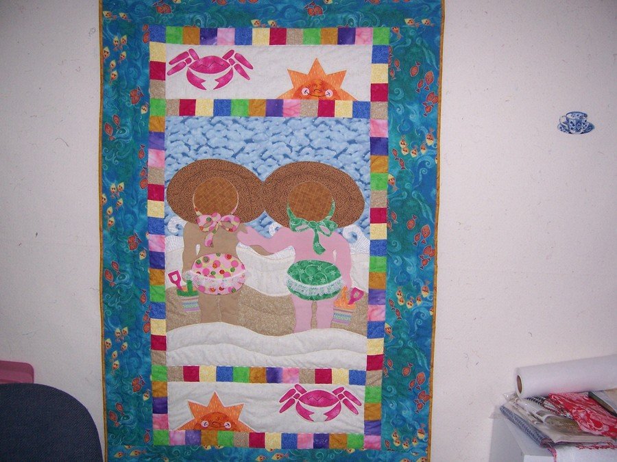 midge4quilts Abbie and Marina - Beach scene with children looking toward the ocean.