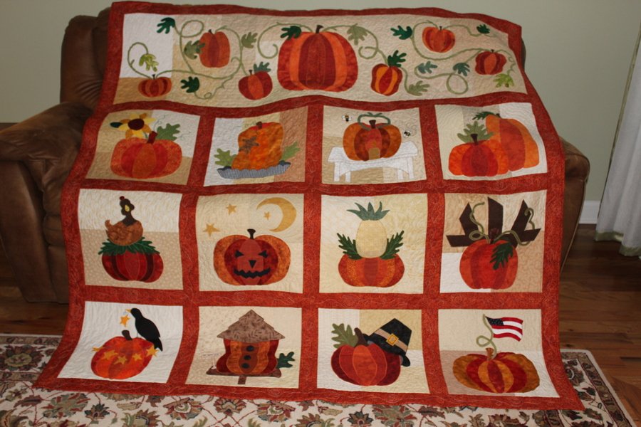 retiredgrandma5 The Great Pumpkin Quilt - I loved this quilt when I saw it hanging in my local quilt store and knew that I had to make it. It was a block of the month.