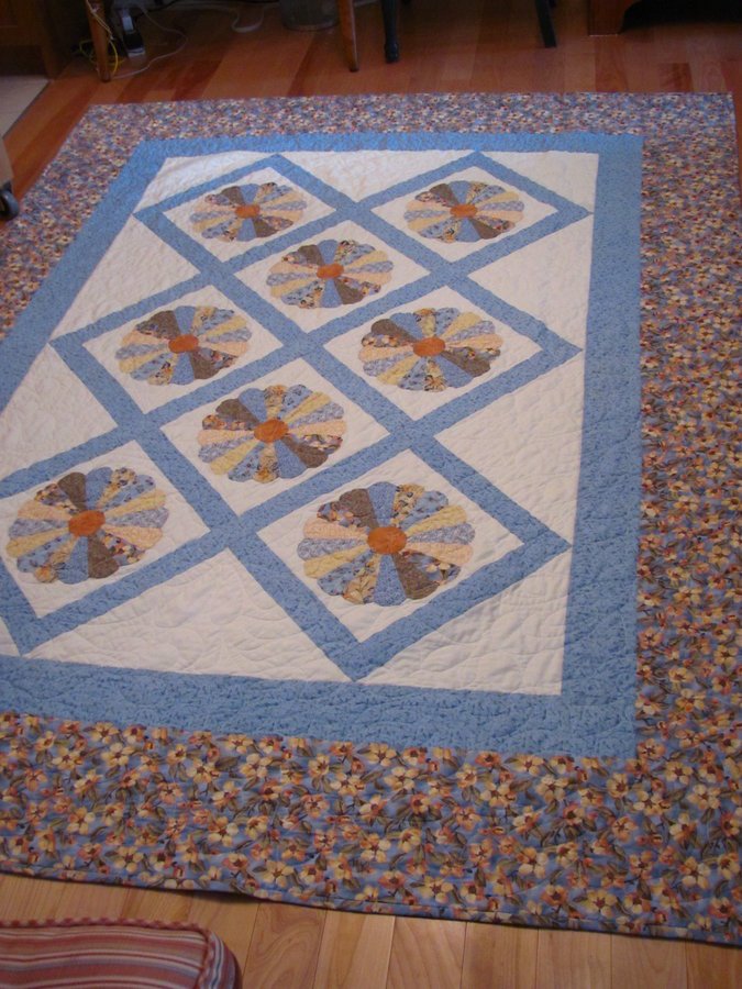 | Design Source - Description | My friend Ruth had a Dresden Plate quilt when she was a little girl. I wanted to give her soemthing special for her 75th birthday, so I made this quilt in her favourite colour - blue! |