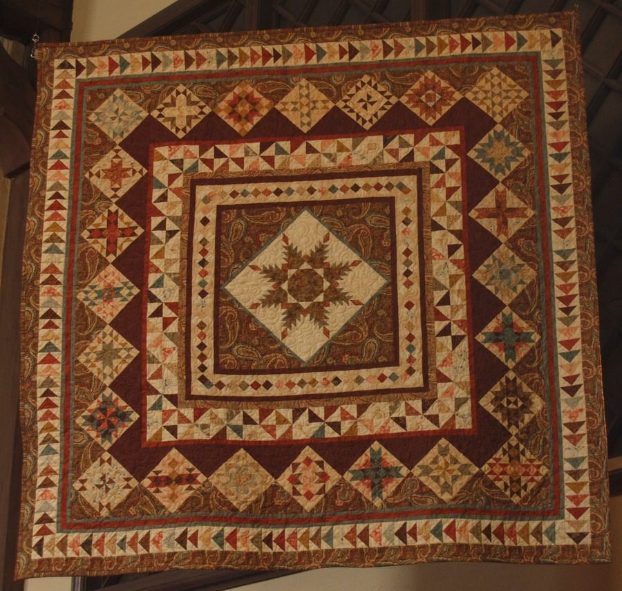 sharequilts Stars for a New Day - Loved this pattern from the moment I saw it. Sue's instructions were precise and easy to follow. I loved the challenge of coordinating colors and precision piecing. I ended up making a brown quilt! How did that happen. As they say, the quilt spoke to me and told me what colors to use.