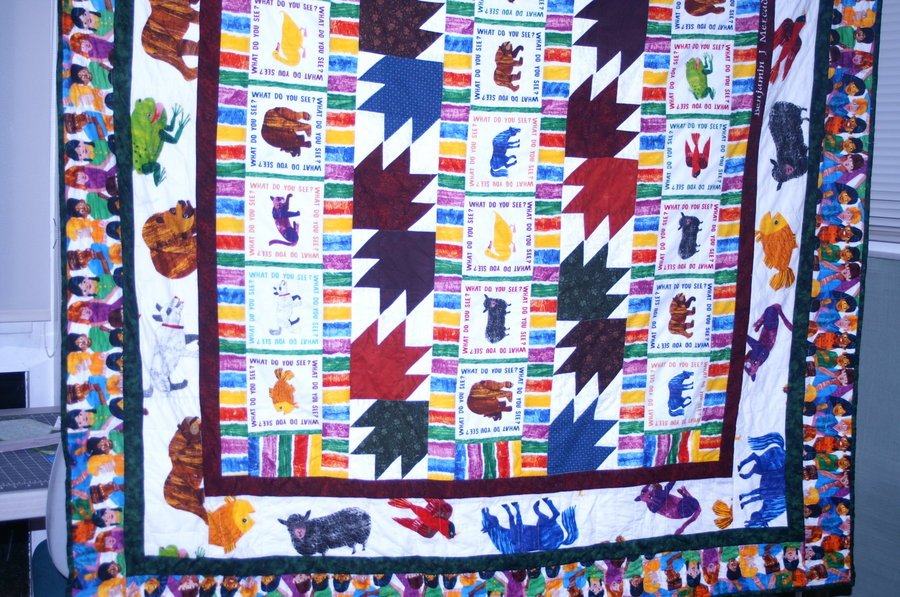 DenBoschgal BROWN BEAR for Benjamin - Made as a gift for a friends first Grandson. Used a variation on fabric for bear paws and borders. Free-motion quilted.