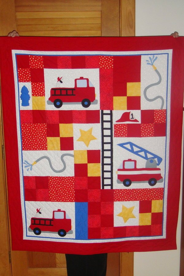 rittmeyer To The Rescue - I made this baby quilt for Jackson whose father is a member of the Cincinnati Fire Department and whose grandmother drives the Rescue Truck for her local fire department. When I saw the pattern on Keepsake Quilting's website I just knew it would be perfect for this little one.