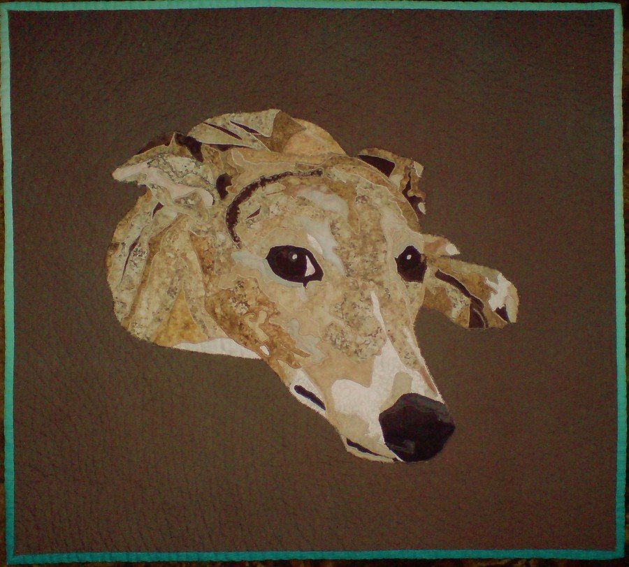 | Design Source - Description | This quilt is based on the owner's favorite photo of her greyhound Cuvee. I used Stonehenge fabric to create the brindle effect. |