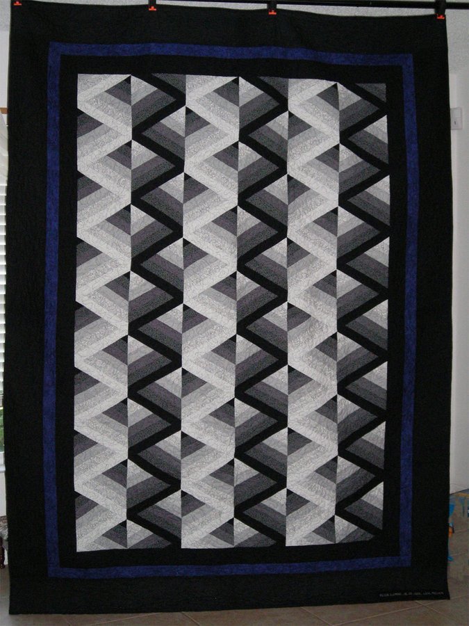 bkbentley Optical Illusion - I made this quilt for my son's birthday. I found the pattern in a local quilt shop. It looked like a nice pattern for men. I chose black & white with a border of blue.