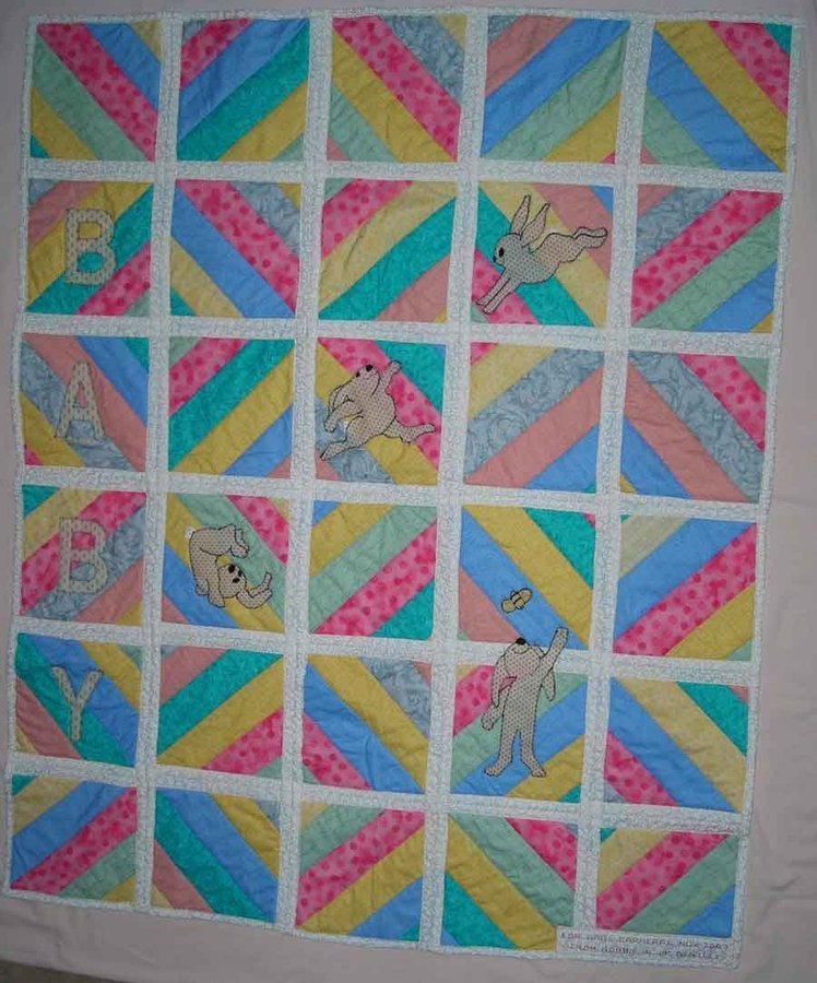 | Design Source - Description | This quilt was made for a baby shower for good friends. I combined a Fun and Done quilt as you go pattern and added applique rabbits from the designs of Margie Engel's Rabbit Cove. It was a quick and fun baby quilt. |