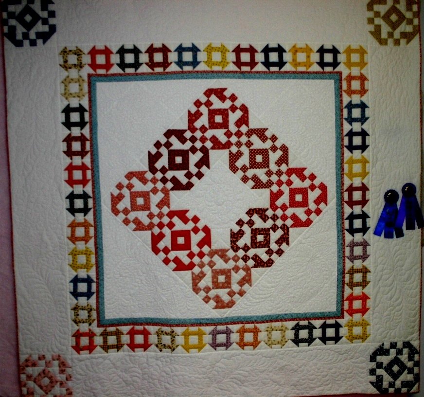 tkwritr 1930's Guild Challenge - 1930s Square blocks were won as a BOM drawing (made by various members). Won 1st Place and Best of Show at Challenge Quilt show. The layout and quilting motifs are my original designs. I have close-up photos of the quilting on my Profile Page.