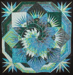 | Design Source - Description | wysiwyg... A spiral lone star done in blues and greens for a very special friend. My third quilt ever... I bit off a bit more than I could chew, but I finished it! |
