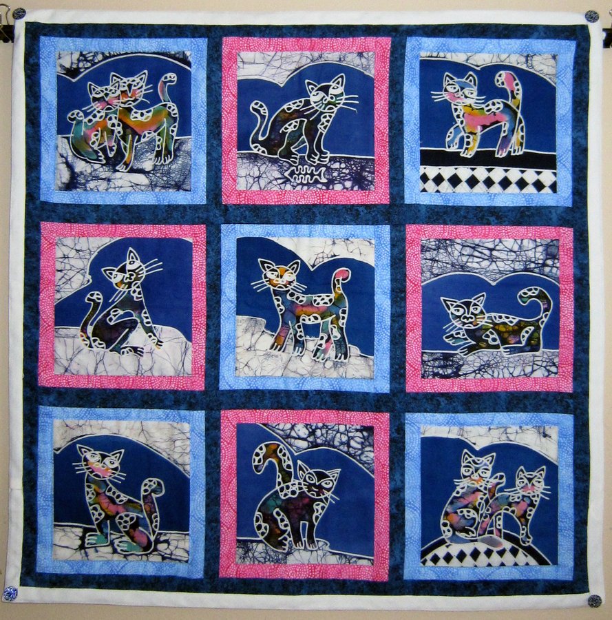 | Design Source - Description | My mom loves cats, and when I saw these cute batik cat squares I knew I had to make her something out of them. Turned out to be a wall hanging! |