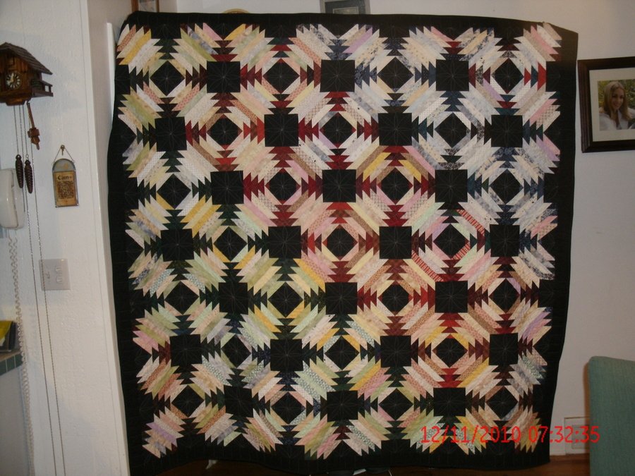 polishquilter Happy Pineapples - Changed the pattern a bit to make it square. USed fabric from stash. Tried to arrange fabric in blocks so that it looked like a gradual transition from one color to the next. Made as a Christmas gift for my sister and her family