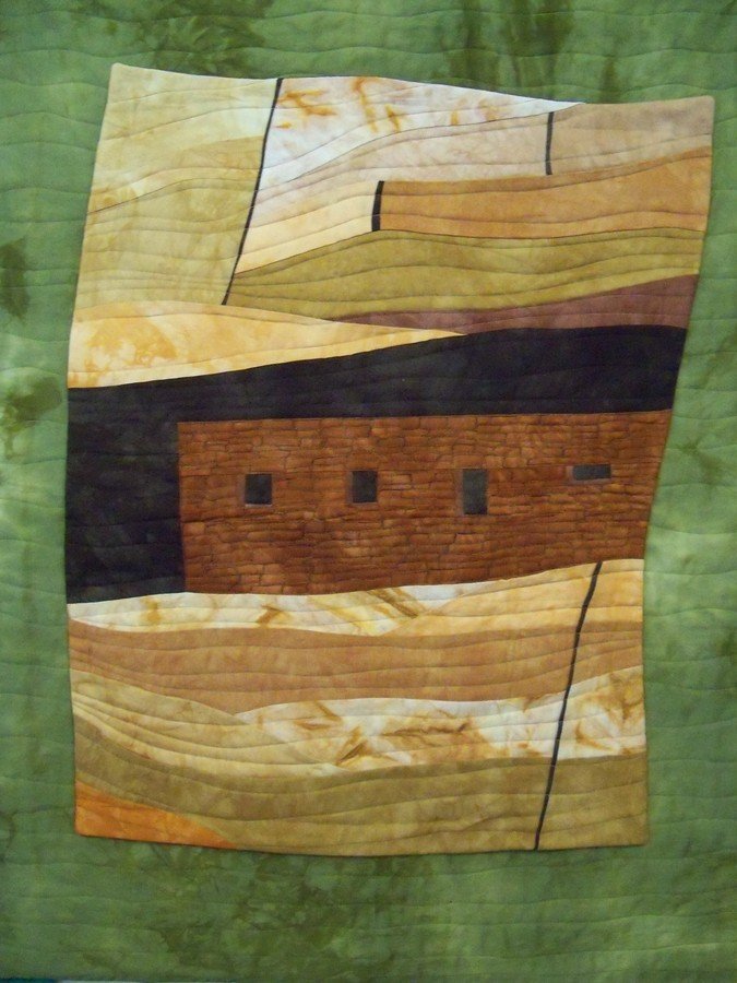 jrebick The Ruin - My father wrote a book which is about a boy living in an indian ruin near Mesa Verde national park. I wanted to make a quilt to honor this. I used intuitive piecing and my own hand dyes to make the quilt. Is is portrait mounted onto another piece of hand dye for the background.