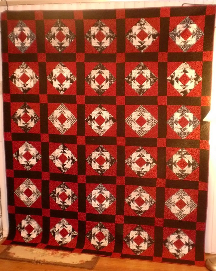 angkollet Carol's Christmas Quilt - My mom called to tell me about this technique she learned at a quilt guild meeting. I was so supprise at how easy it was, and that I understood how to do it with verbal directions only. You rock Mom! So I made a quilt for Carol for Christmas and she loved it.