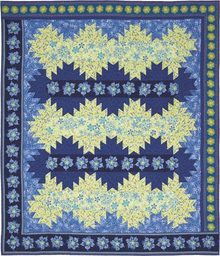 | Design Source - Description | The delectable blocks are cleverly made with large triangles, pieced into rectangles and cut apart, shifted around and pieced back together. The fabric is Chloe by Benartex. |