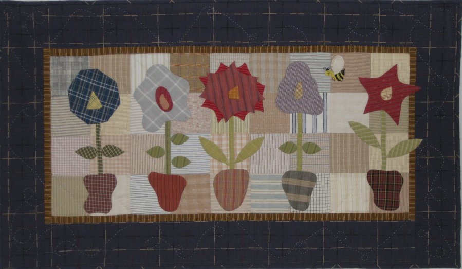 BluebirdArtQuilts Bee Heaven - I designed this quilt using all shirtings and homespuns. It is hand quilted in pearl cotton with the border being quilted in the path the bee would take. It was fun to make. I published a pattern for it and hung it above my fireplace.