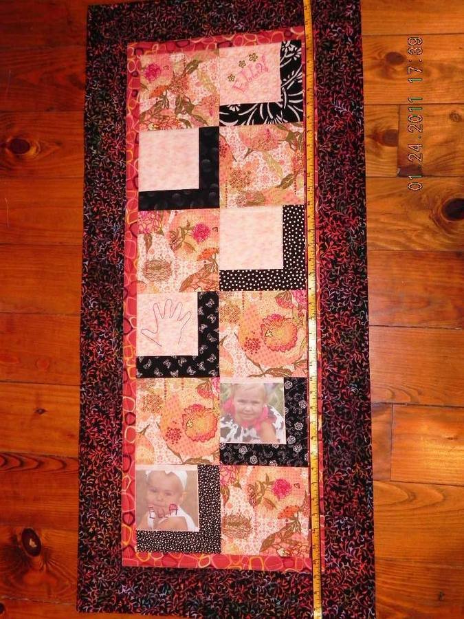 | Design Source - Description | "Growth chart" using machine embr, scanned handprint and child's "signature". |