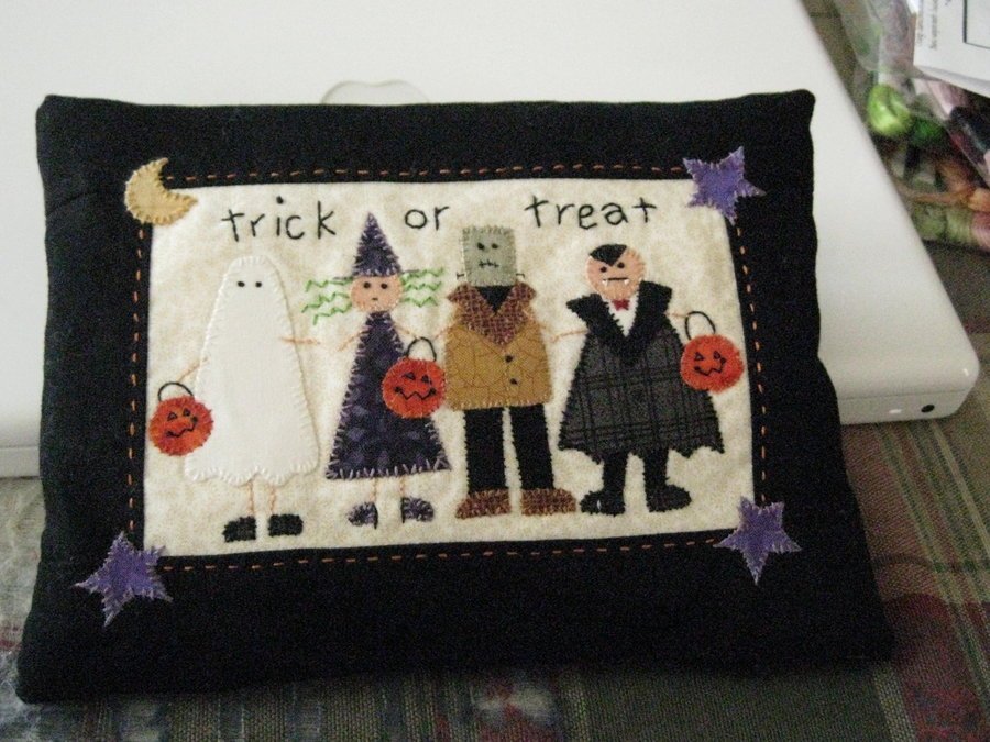 debkendall Halloween Monsters - I couldn't resist making this cute little pillow. The pieces were tiny but I used fusible web, then did the hand embroidery.