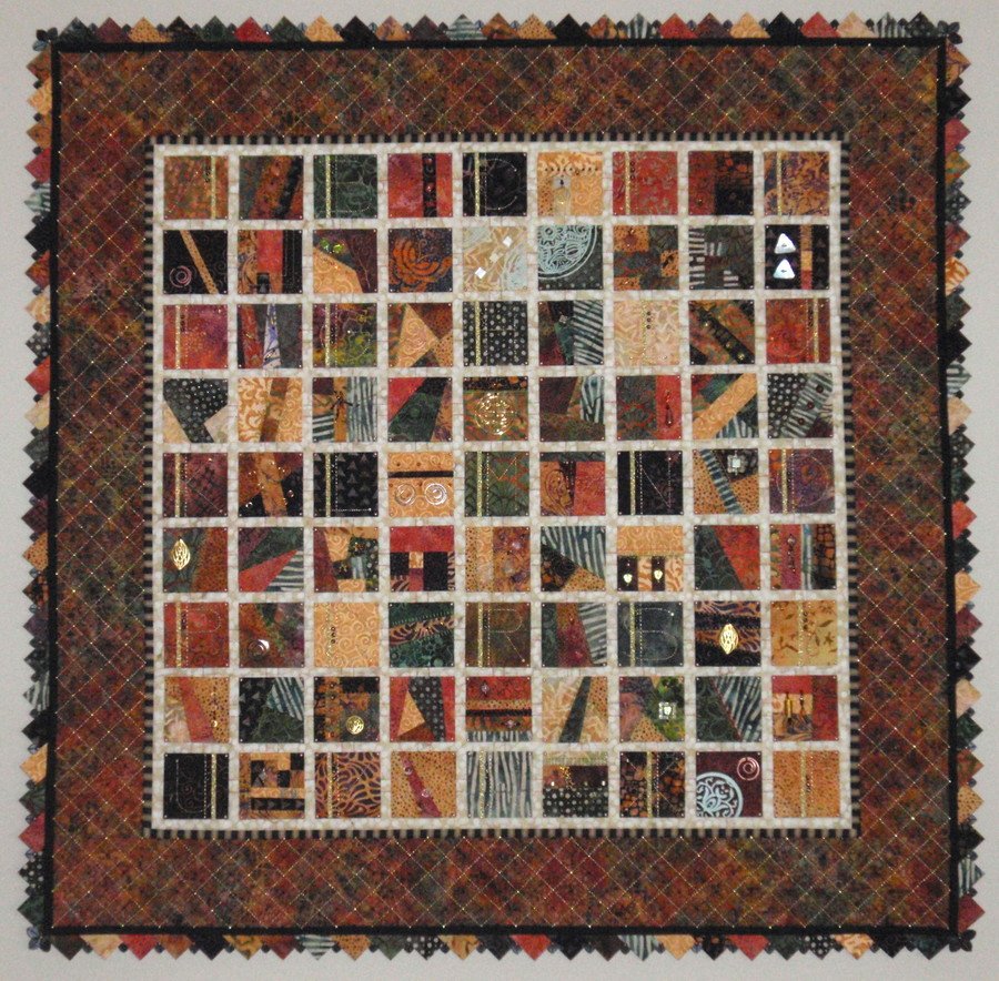 janetstone Alphabet Alchemy - I wanted to make an alphabet quilt using stitching as the alphabet. Each block was pieced, quilted, mounted on heavy pellon, then attached to the quilted background using tiny brads. Lots of embellishments and doo-dads! This is the one quilt I have made where, if I had to do it all over again, I wouldn't change a thing!