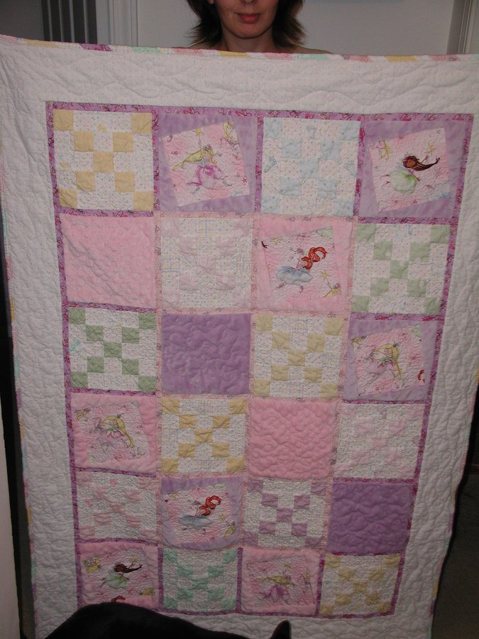 serin10 Dancing Faries - My first commissioned piece for a preteen who loved princesses. I used pink and purple minky fabric ND did a random tilt to fairy princess blocks.