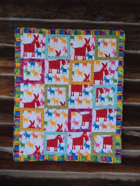 gerbigk Burros for Baby - I made this quilt for a friend's first grandchild. I didn't want to cut up the fabric too much, so just framed every other block.