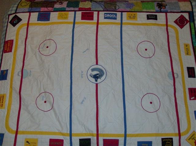 LauraBC Linden's Hockey quilt - My daughter and husband are huge Canucks fans. This was made for their new son who is due in March