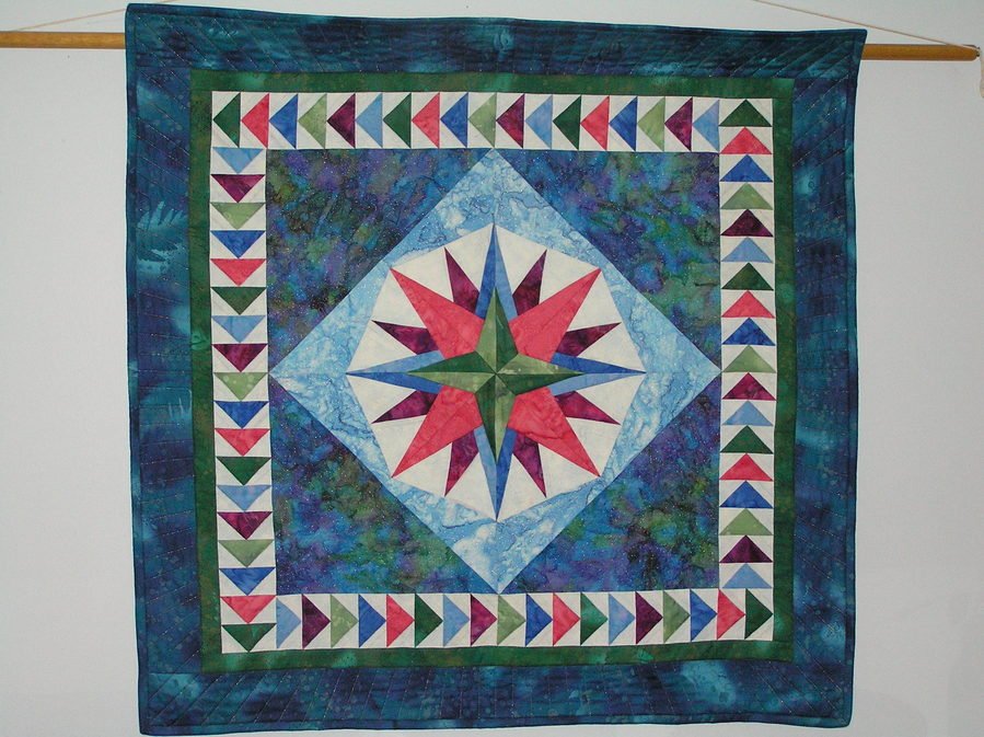lizzy3 Mariner's Compass - Foundation pieced and machine quilted with metallic threads.