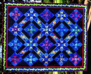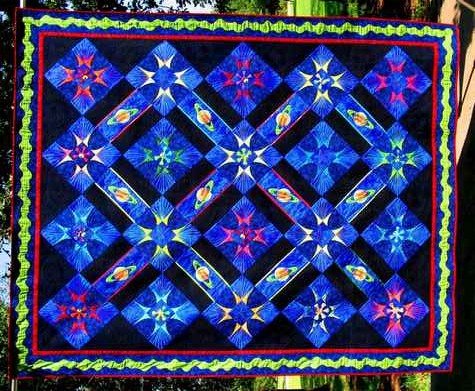 francesmarie "Eye" am Ameba - I enjoyed so much designing this quilt. The fabrics were perfect and the colors vibrant and wonderful. Sue done a fantastic job with the quilting.