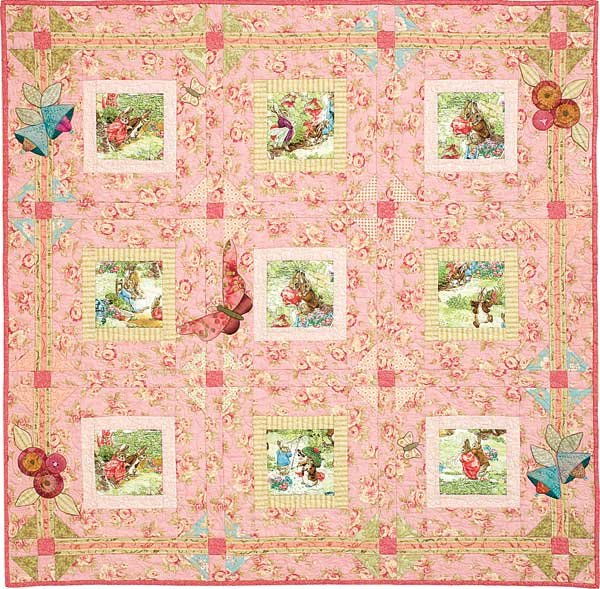 WillowHillQuilts Mia's Secret Garden - I designed Mia's Secret Garden for our first granddaughter, Mia Noel. My daughter and I love Beatrix Potter's beautiful characters and thought they would be the perfect choice for her nursery quilt. I added some flowers and butterfly applique to complete her secret garden.