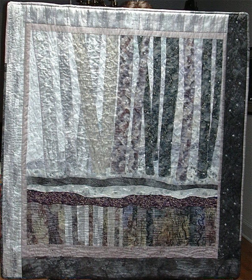 artyheart Winter Woods - This is a free style raw edge applique quilt. I drew the design and cut and placed fabric as I worked.