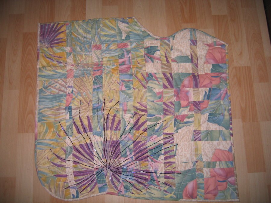 | Design Source - Description | Based on Ricky Tims "Convergence" was designed and executed in two weeks for a contest sponsored by Mill End Textiles. Used two tropical prints. |
