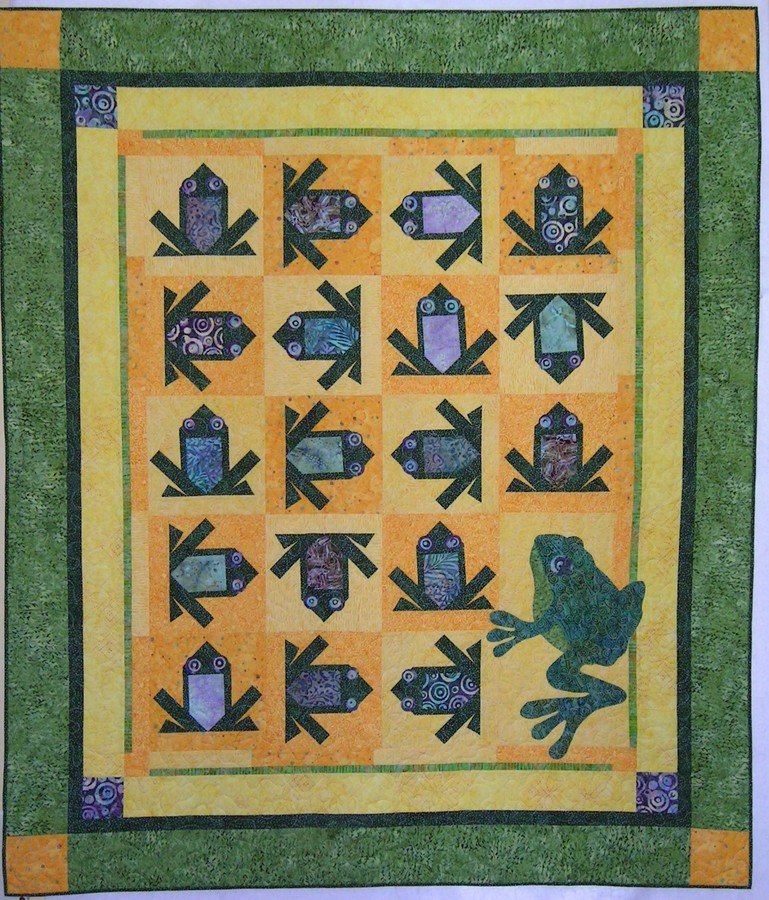 | Design Source - Description | Multicolored batik frogs + 1 large applique frog |