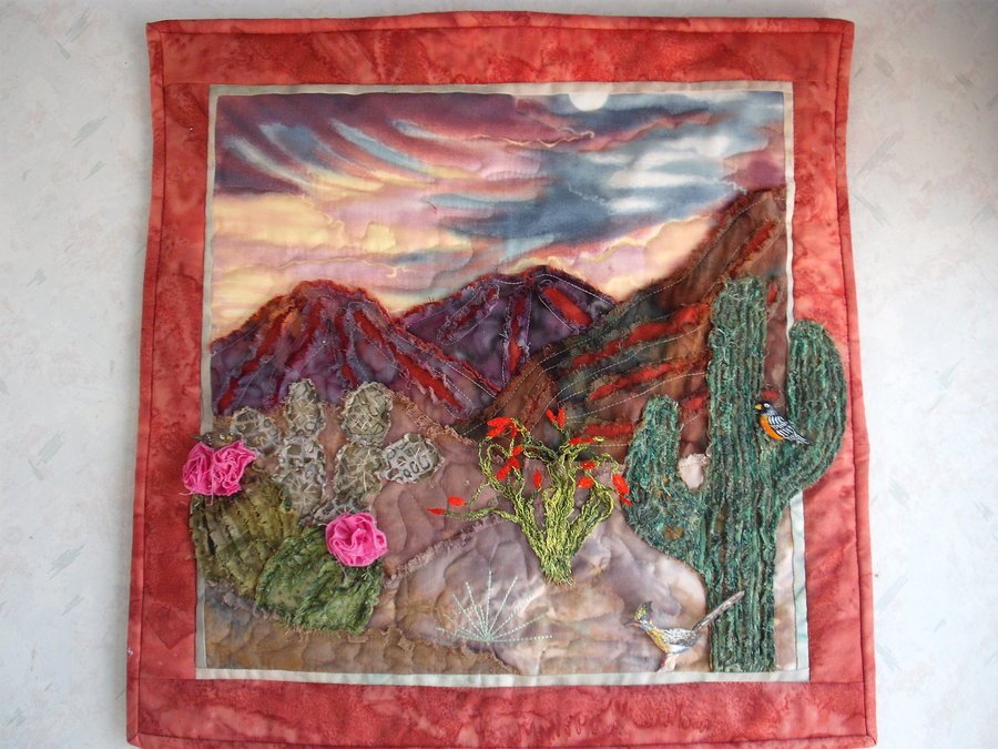 | Design Source - Description | Landscape quilt with variety of new techniques learned in workshop. |