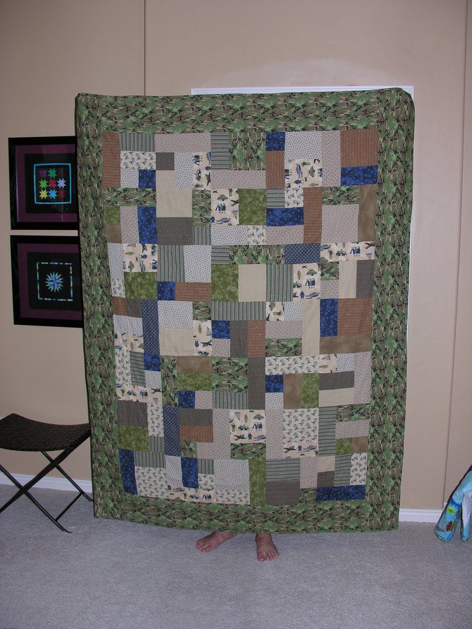 | Design Source - Description | Made from fabrics selected mostly by my then 8 year old son. It was difficult to find military themed fabric at the time! This was the first large quilt I pieced and quilted. |