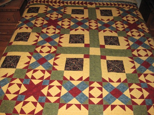 | Design Source - Description | Sheryl Till designed this mystery quilt to look like a Celtic pattern when done. I did lots of free motion machine quilting as I am getting good at it. This quilt is currently on my bed. |