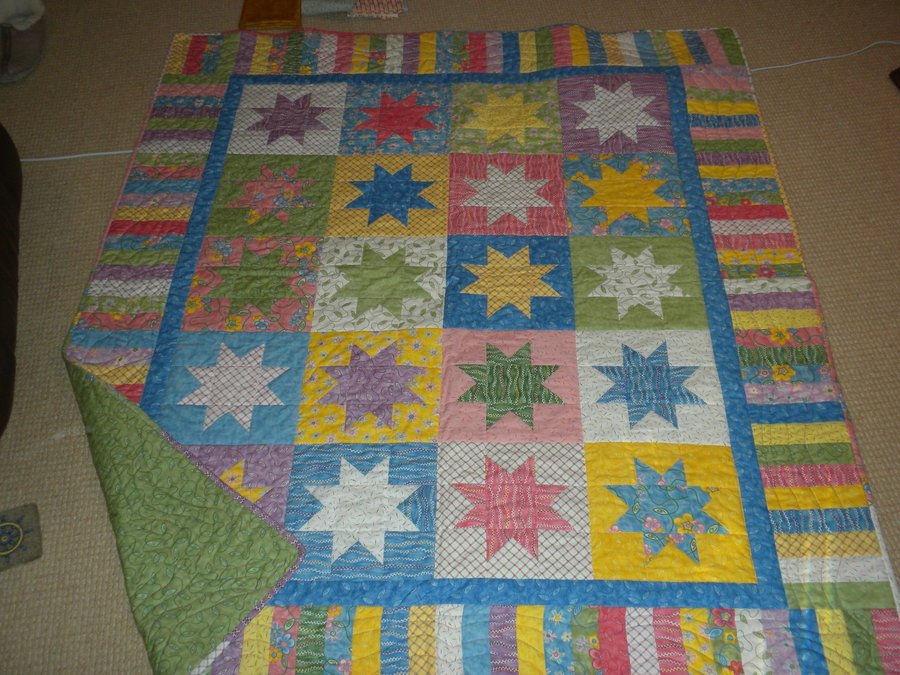 RiverOwl Spring Fling - Saw quilt in fabric store and loved the fabric in the quilt so much I bought the fabric & was given pattern design by the store owner to follow directions. First quilt I got fabric and directions to actually follow. But I had a couple of quilt classes by now and felt a little confident I could do this one. This is my favorite quilt.