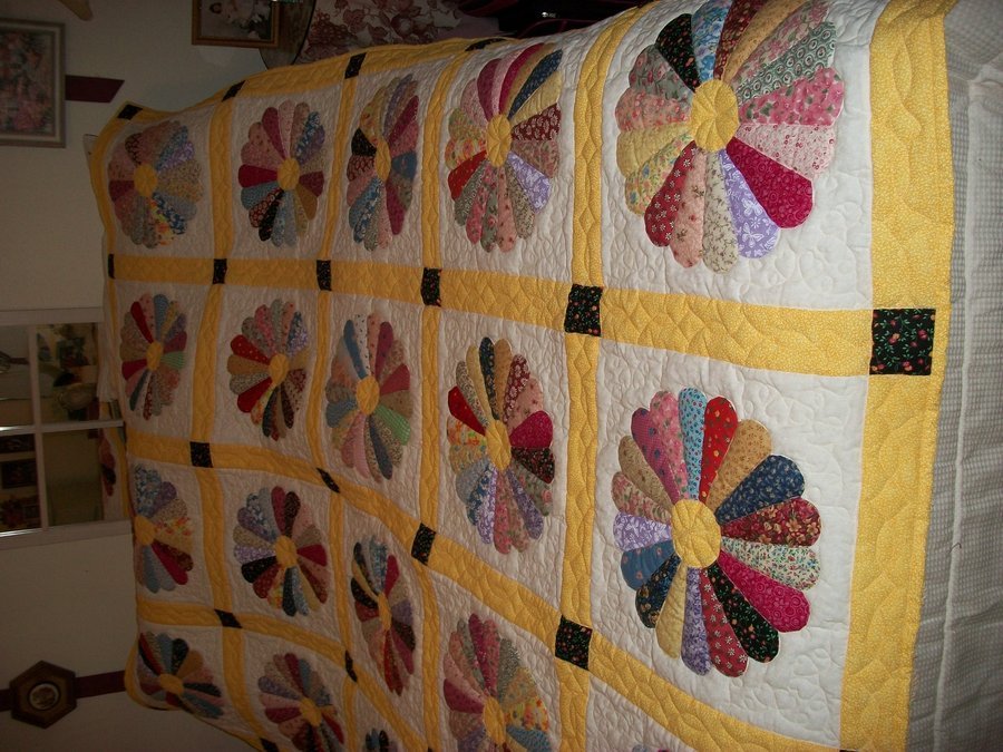 jean082 My Dresden - I have misplace the quilt magazine but used the pattern from there Machined Appliqued the medallion onto White background This was first quilt done on my new Babylock Crown Jewel using ruler, stencil, and pattern I used a thick batting so the quilting would show
