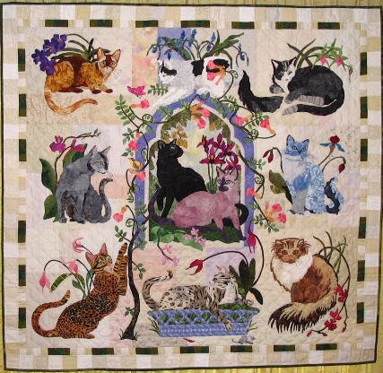 marva Thursday's Garden - Thursday is the cat on the top. This was one of my modifications to the pattern. Although a kit was the starting point, I made many fabric substitutions.