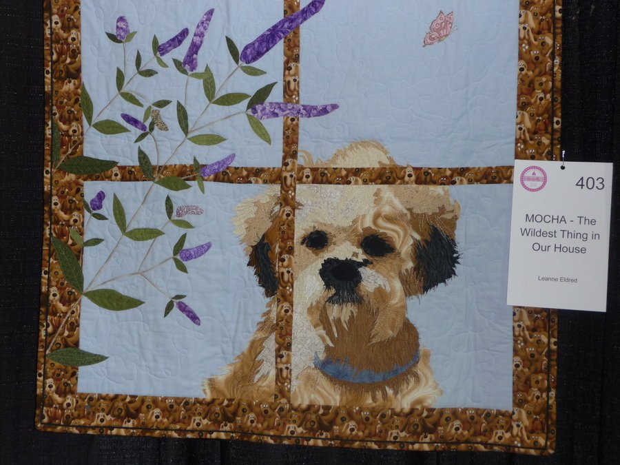 lmeldred Mocha the Wildest Thing in Our House - Used a photo of my dog. Posterized the photo of Mocha on the computer then made applique pieces by identiying the different shaded areas.