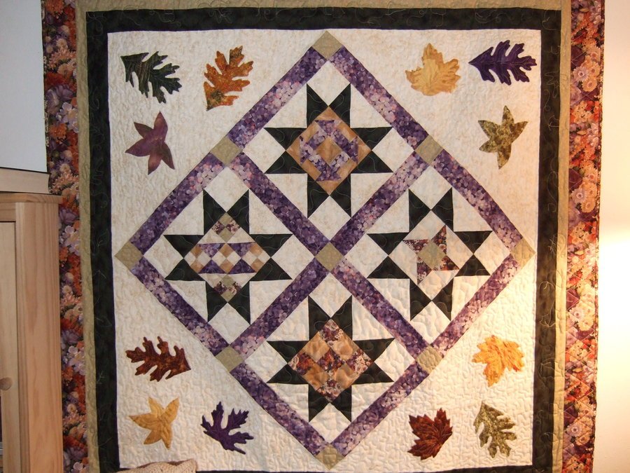 | Design Source - Description | Beginning quilt class making 8 different blogs. Instead of a large quilt, I used my favorite 4 blocks and added applique leaves |