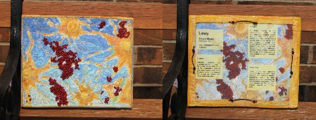 ashgrovemo Lewy - Lewy is my depiction of what brain cells look like when an individual has Lewy Body Dementia. The picture of nerve cells were quilted with metallic thread and red glass beads were used to portray abnormal proteins in the brain. A three dimensional Peltex frame was constructed. Quilt on the way to Houston.