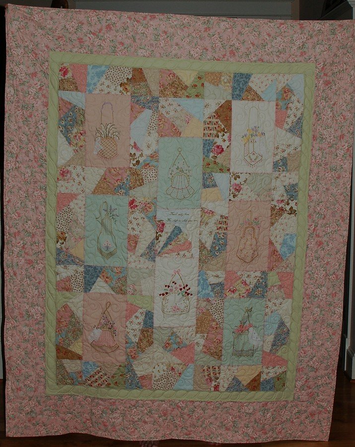 | Design Source - Description | I simply started with a pattern I thought I could change up a little by adding silk flowers and vintage handkerchiefs. I wanted to showcase a subtle use of crazy quilt stitches. It was fun. |