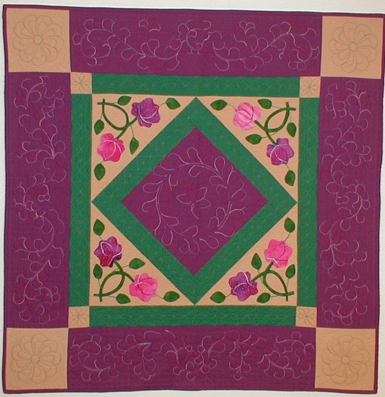 mamaja Summer Amish - Started this after "Winter Amish" but finished it way before. I enjoyed practicing machine applique for the 1st time on this quilt. I learned that I am a much better machine-quilter than a hand-quilter. Also for the 1st time tried variegated thread for quilting.