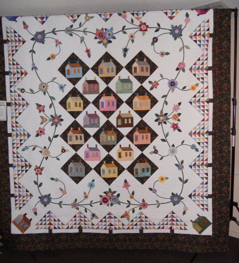 soleraquilter Wildflower Homestead - Found this pattern in a really old copy of Quilter's Newsletter. Worked on it off and on for a couple years and finally finished it last year. It's queen size. The flowers are all dimensional and I felt like I was making a work of art for each one.