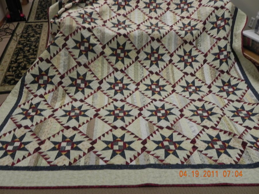 | Design Source - Description | Began as a mystery quilt, but I didn't love the revealed design. Used as many pieces I had already sewn for the mystery quilt as I could, and made something completely different. There is no pattern for the quilt. |
