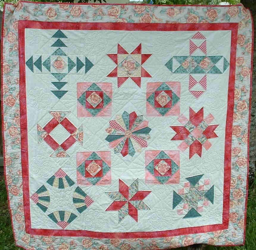 | Design Source - Description | This is my first quilt made maching piecing and completely hand quilted. I fussy cut the inspiration fabric to showcase the roses in the center of some of the blocks. |