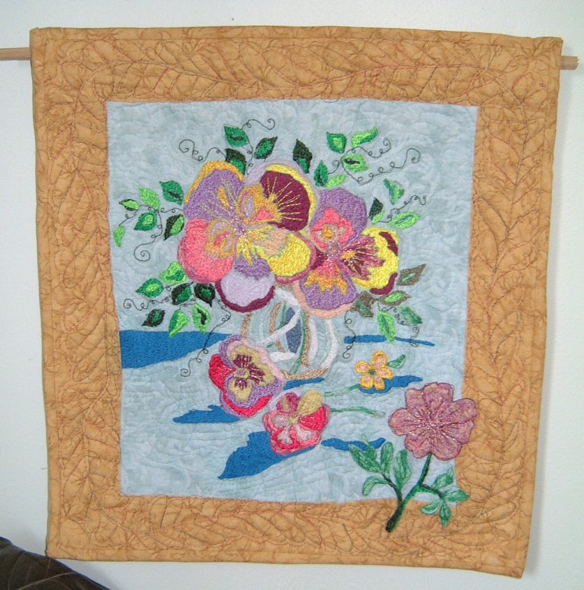 DebbieMac Threaded Painting Vase - After taking 2 of Nancy Prince's classes I decided to try my first bigger thread painted piece. Here it is, I think its pretty amazing myself. I have done one with fabric but this one I did totally with thread and only thread.