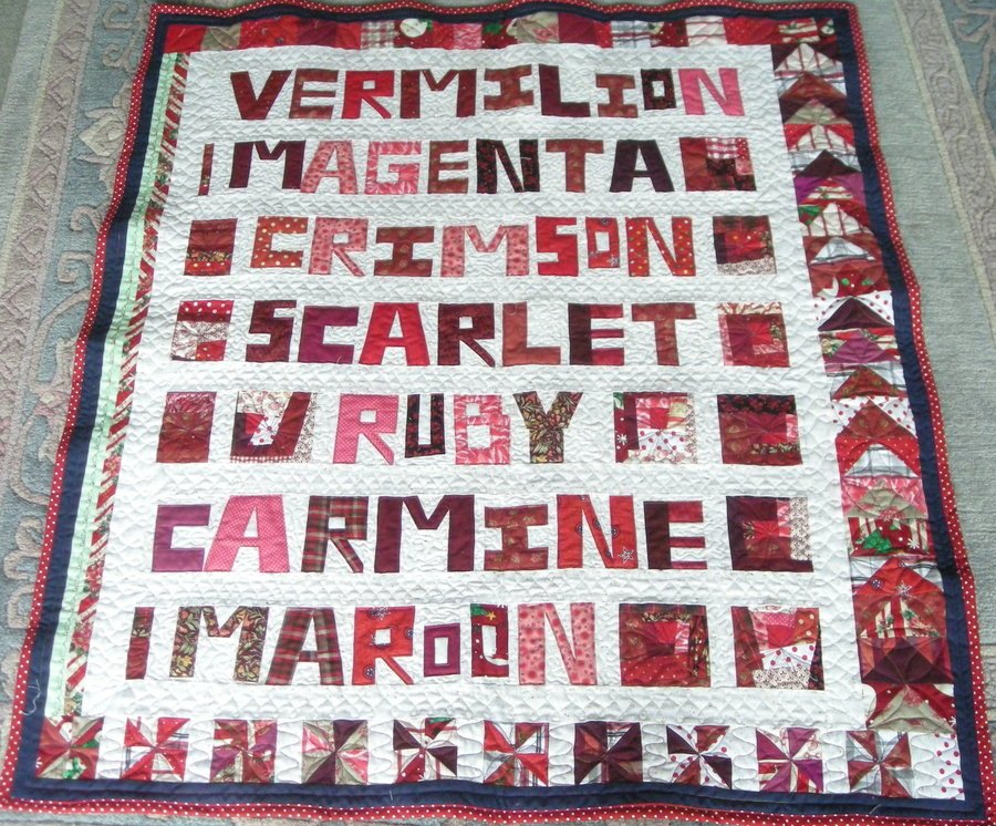 | Design Source - Description | Words in red with white backing with mixed blocks border |