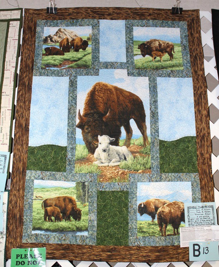 SWMNquilts American Bison - Using a fabric panel my husband chose, I used dimensional quilting to create more background and set each block separately.