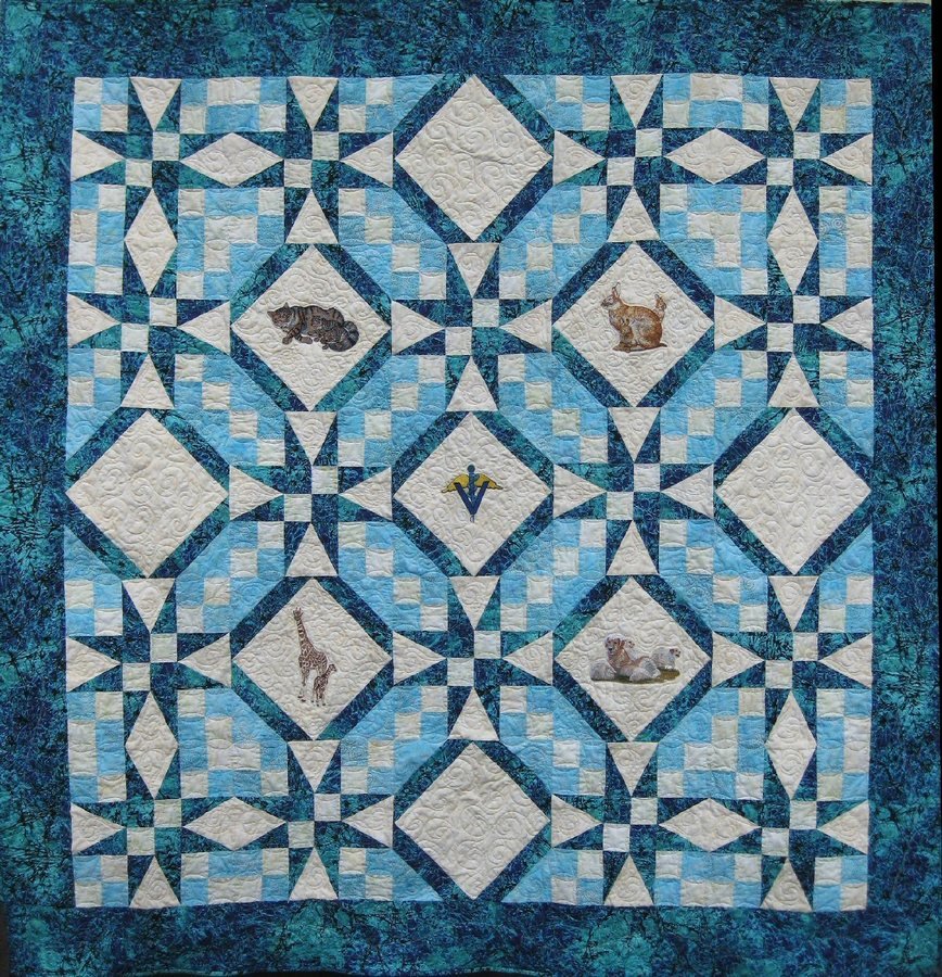 orbitalquilter Mommy and Me for SCAVMA - Tufts Vet School - I made this quilt for a fundraiser for the Student Chapter of the American Veterinary Medical Association at Tufts University vet school. It has machine embroidered mom and baby designs and the Veterinary logo in the center.