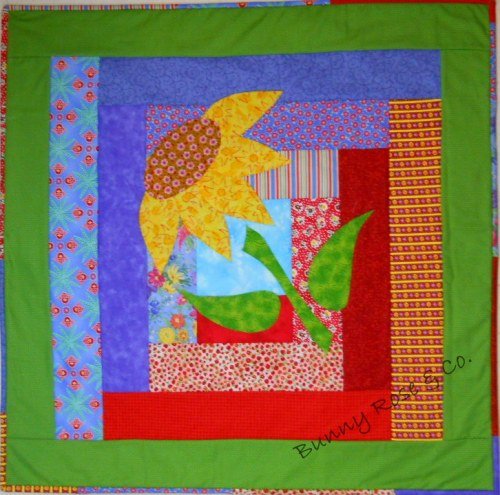 bunnyrose Daisys in the Cabin - I designed this using EQ7 for a class I'm teaching. The shop wanted an easy stitch and flip with a large graphic design in the center. I have had so many wonderful comments about the colors.. my favorites!